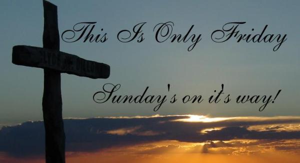 Be blessed and remember if this is your Friday….Sunday’s coming. This is only Friday…your Sunday’s on it’s way! Stand tall! Keep the faith! Run the race! Don’t give up cause Sunday’s on it’s way!