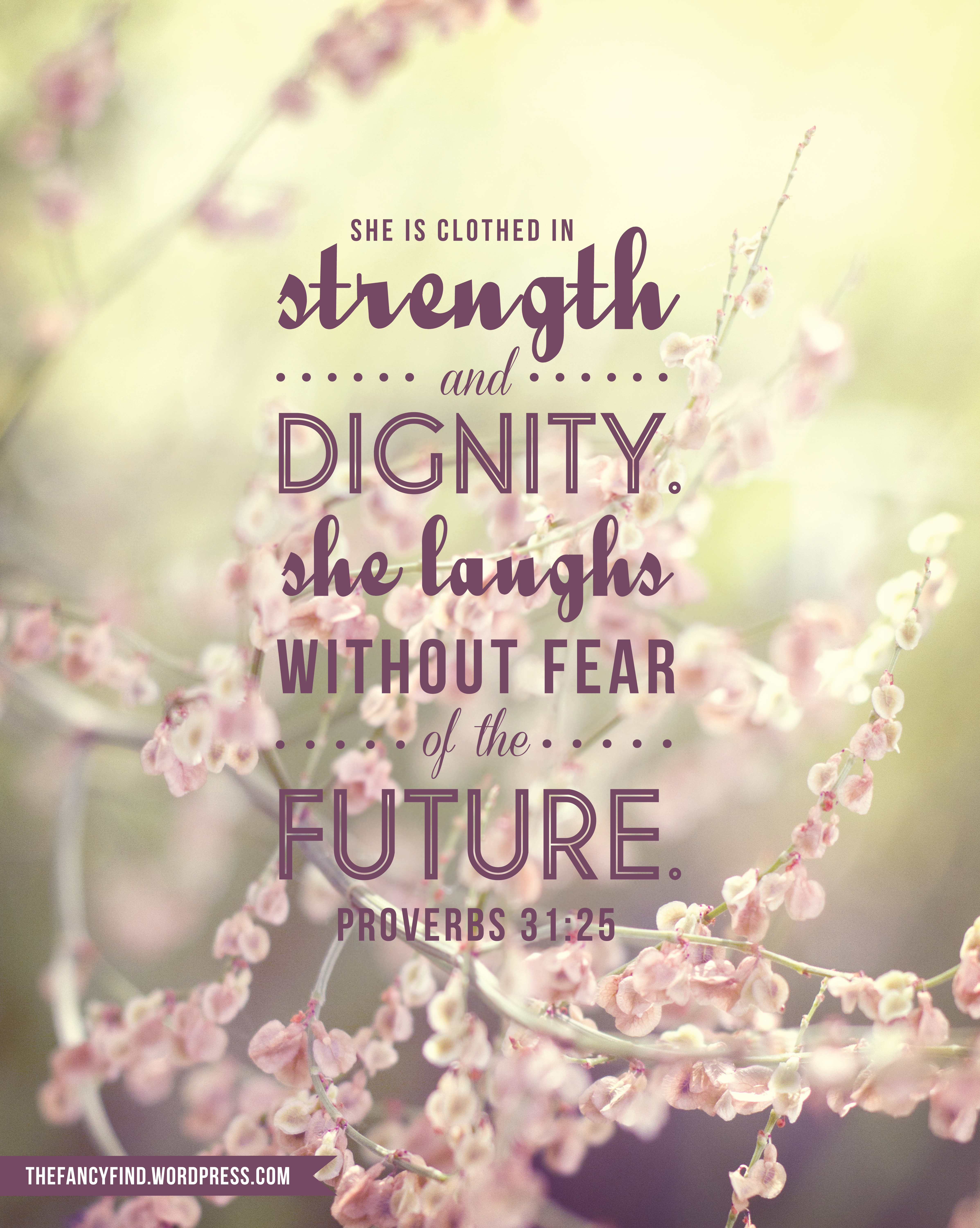 A modern Proverbs 31 woman is clothed in strength and dignity! She laughs without fear of the future! She lives her life one day at a time and savors every minute. She believes in the saying…“Life is not measured by the breaths you take but by the moments that take your breath away!” She lives every moment to the fullest because she remembers from whence she came!